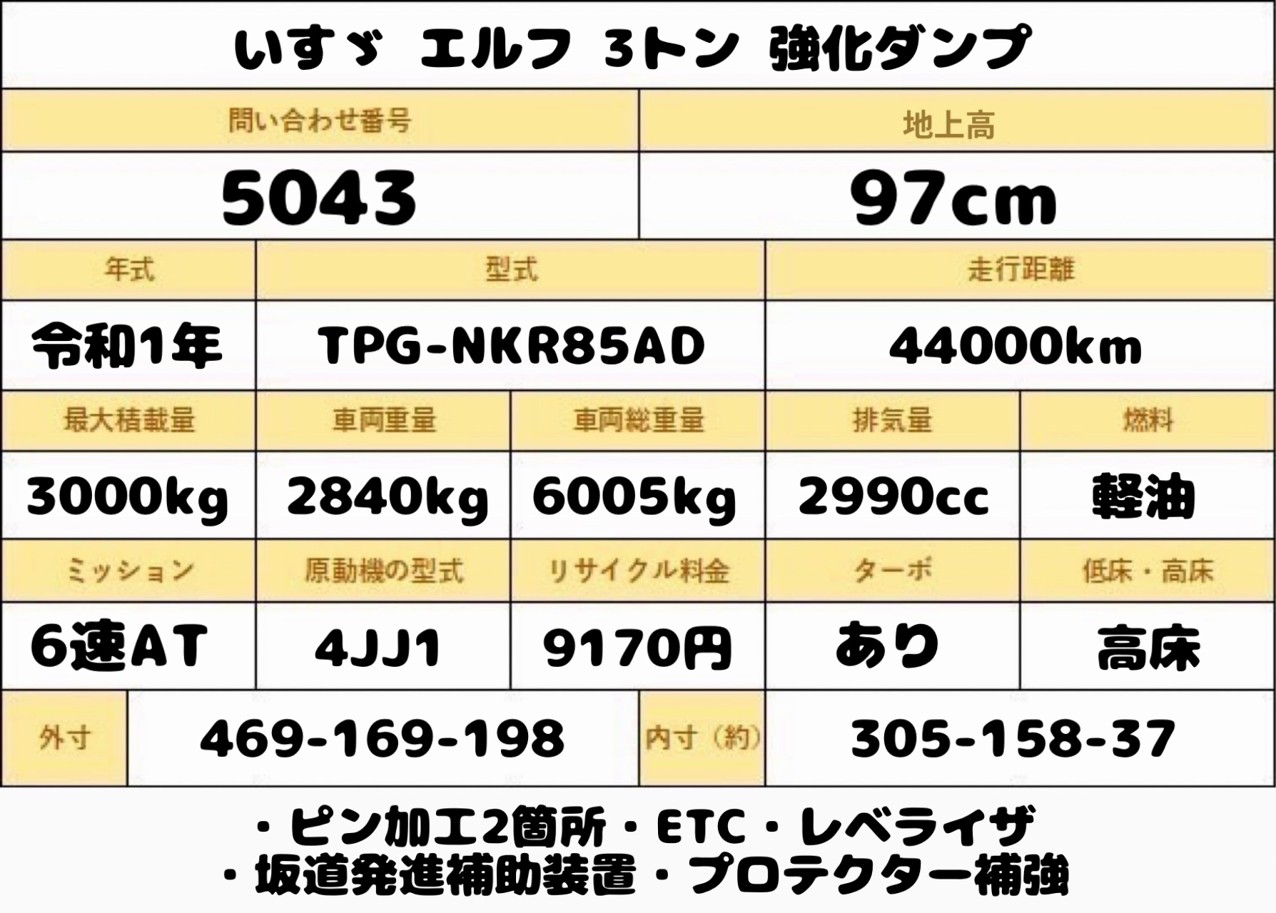令和1年式 いすゞ エルフ 積載3トン 強化ダンプ 極東製 高床 AT ピン加工2箇所 ETC プロテクター補強 キーレス★お問い合わせ番号:5043★
