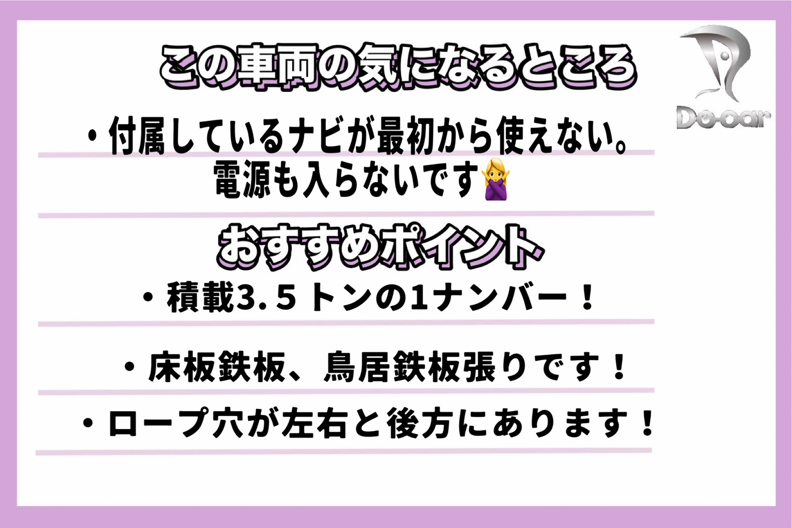 株式会社デッカーでは、厳選して仕入れた上質なトラックを豊富に取り揃えております。