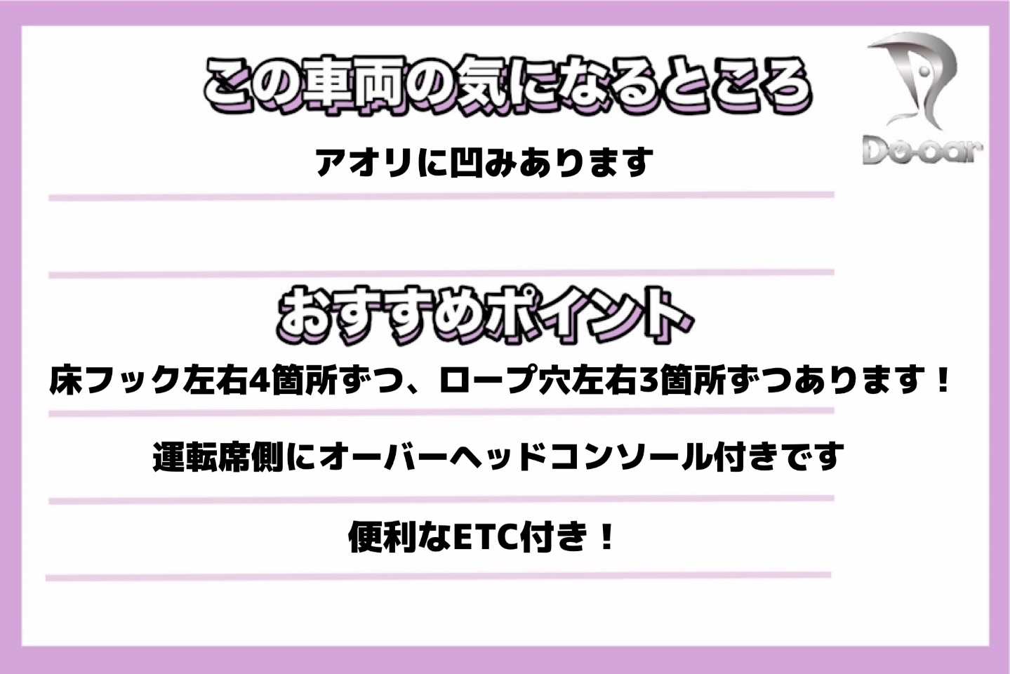 ※商談時にできる限りの車両説明は行いますが、弊社の見落とし、個人の価値観の違いなどもございますので、出来る限り現車確認を行ってください※