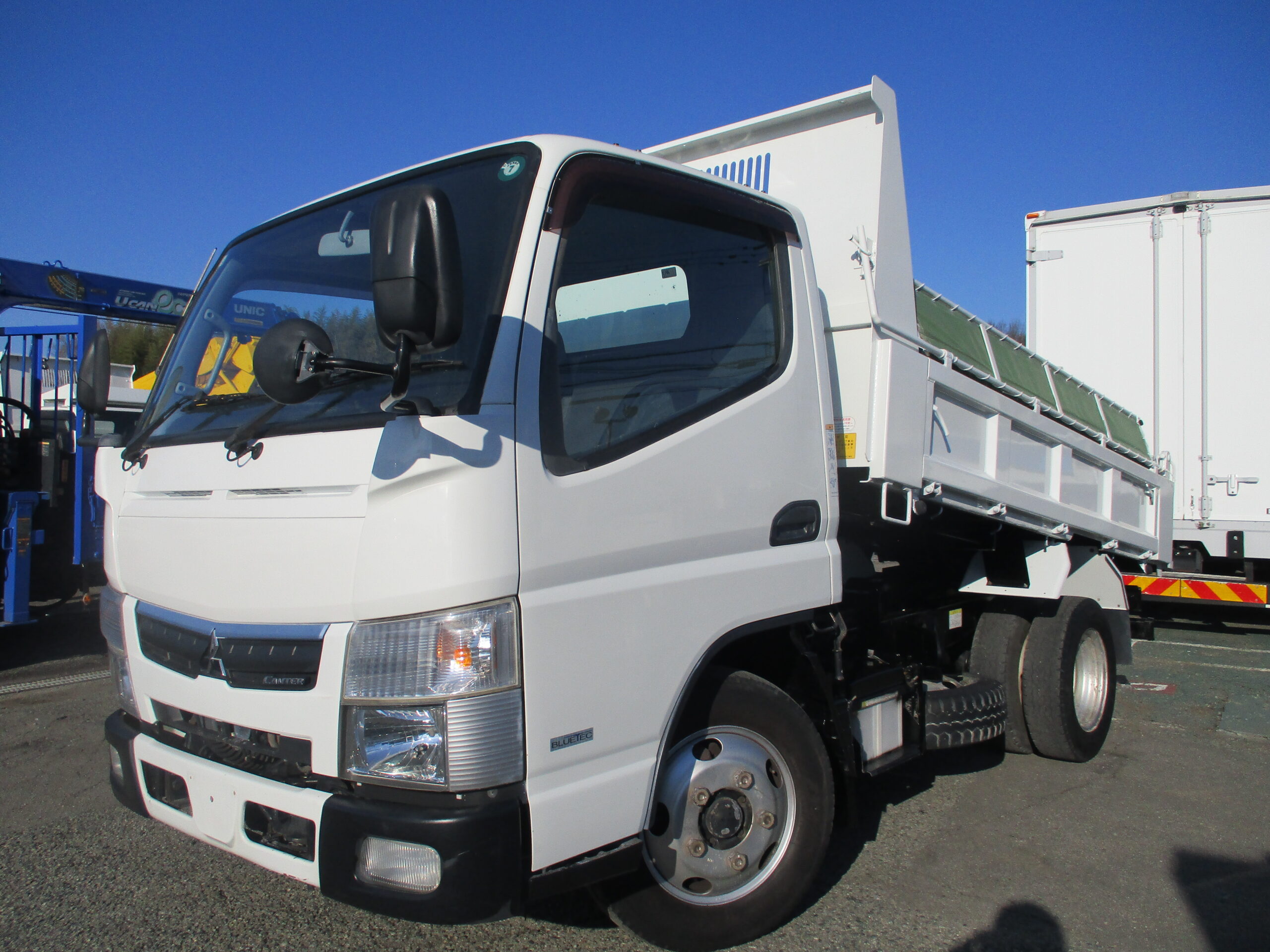 売約済み 平成30年式 三菱 キャンター 積載3トン 強化ダンプ 全低床 5速MT コボレーン あゆみ掛け3カ所 荷寸304-159-37 4ナンバー 150馬力 極東製 DD02-31 左電格ミラー ★お問い合わせ番号:1287★